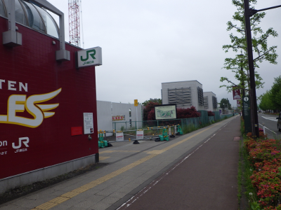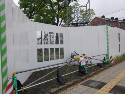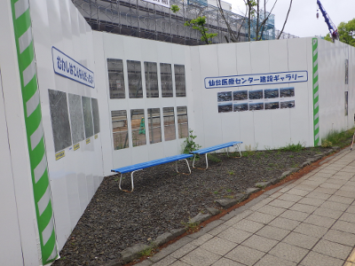 仙台医療センターの新築工事現場脇の旧ベンチの周り