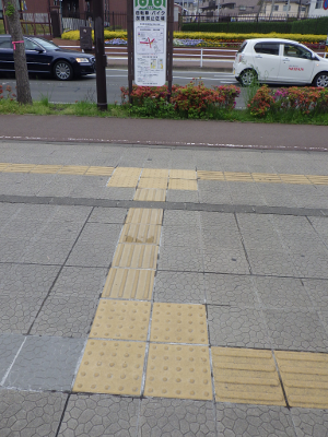 曇天のこの日,宮城野原駅前に違法駐輪された自転車はなかった。また,点字ブロックの利用を妨げるような障害物はなかった。