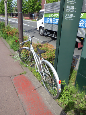 そして,仙台医療センターの新築工事現場脇の旧ベンチの周りには,昨年末から放置された2台の自転車が,未だ放置されっぱなしになっていた。