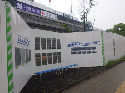 仙台医療センターの新築工事現場脇の旧ベンチの周り