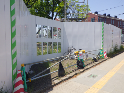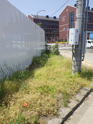 仙台医療センターの新築工事現場脇の旧ベンチの周り