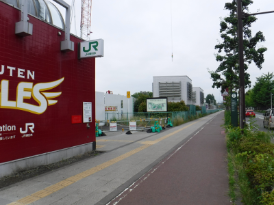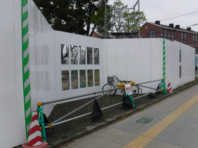 仙台医療センターの新築工事現場脇の旧ベンチの周り