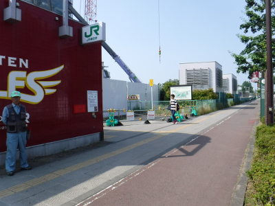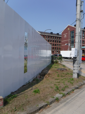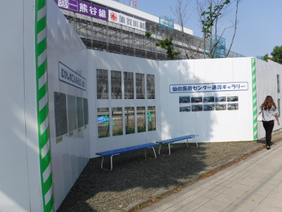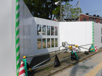 仙台医療センターの新築工事現場脇の旧ベンチの周り