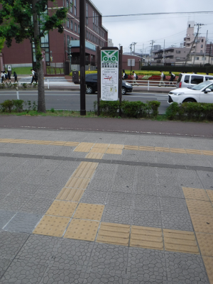 曇天のこの日も,宮城野原駅前に違法駐輪された自転車はなかった。また,点字ブロックの利用を妨げるような障害物もなかった。