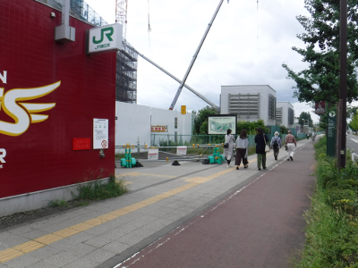 いつもより少し遅めの時間に宮城野原駅前に到着したこの日,駅前に違法駐輪された自転車はなかった。また,点字ブロックの利用を妨げるような障害物もなかった。