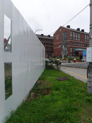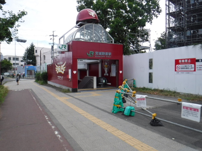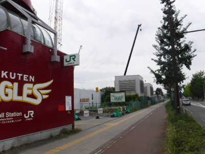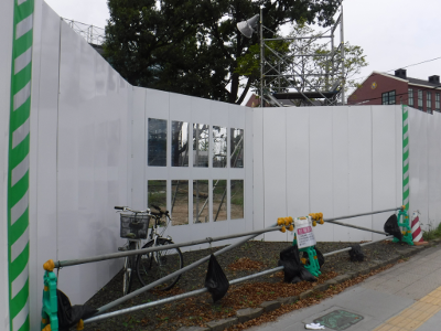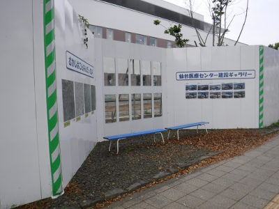 仙台医療センターの新築工事現場脇の旧ベンチの周り