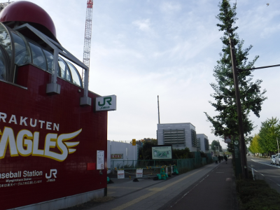 仙台医療センターの新築工事現場脇の旧ベンチの周り