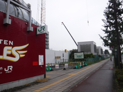 仙台医療センターの新築工事現場脇の旧ベンチの周り