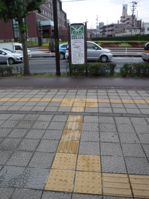 曇天のこの日,宮城野原駅前に違法駐輪された自転車はなかった。また,点字ブロックの利用を妨げるような障害物もなかった。
