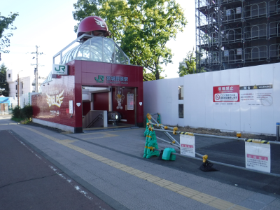 気持ちよく晴れたこの日,宮城野原駅前に違法駐輪された自転車はなかった。また,点字ブロックの利用に支障をきたすような妨害物もなかった。