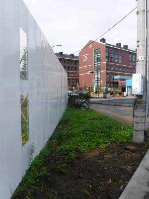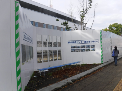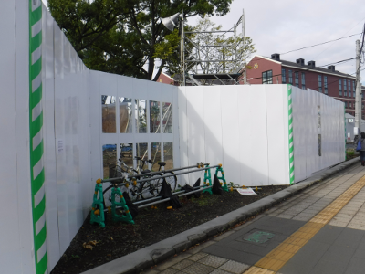 仙台医療センターの新築工事現場脇の旧ベンチの周り