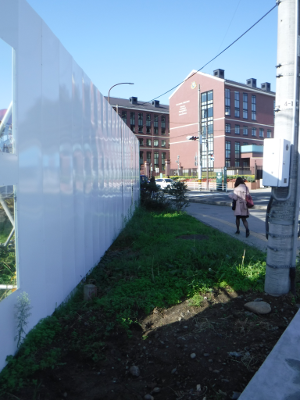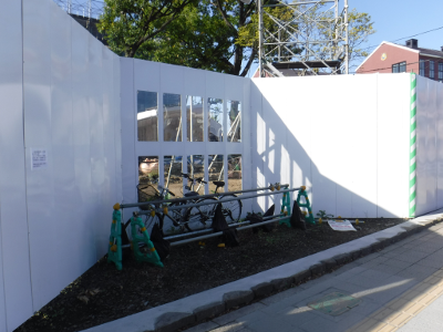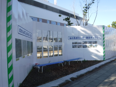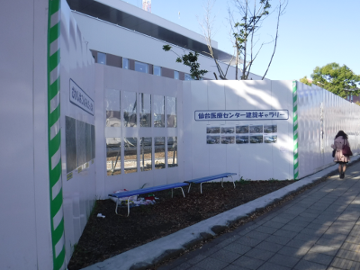 仙台医療センターの新築工事現場脇の旧ベンチの周り