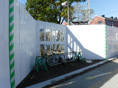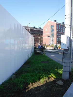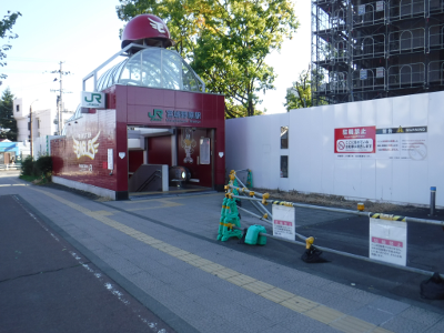 仙台医療センターの新築工事現場脇の旧ベンチの周り