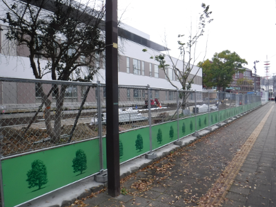 仙台医療センターの新築工事現場脇の旧ベンチの周り
