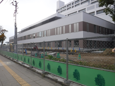 仙台医療センターの新築工事現場脇の旧ベンチの周り