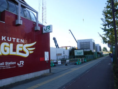 仙台医療センターの新築工事現場脇の旧ベンチの周り