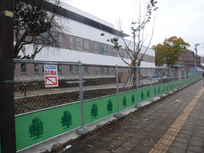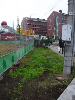 仙台医療センターの新築工事現場脇の旧ベンチの周りにも,バス停脇の休息場所の跡地周辺にも,違法駐輪された自転車はなかった。