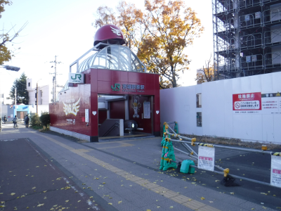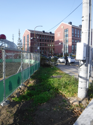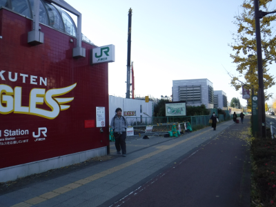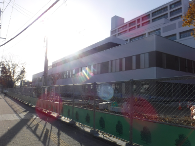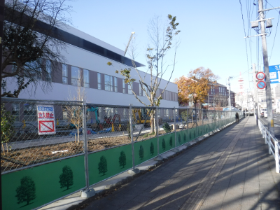 仙台医療センターの新築工事現場脇の旧ベンチの周り
