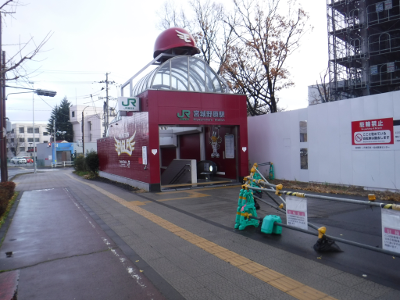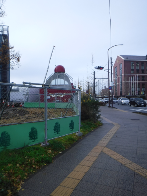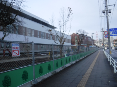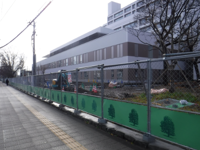 仙台医療センターの新築工事現場脇の旧ベンチの周り
