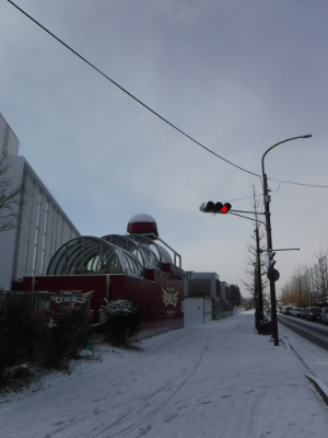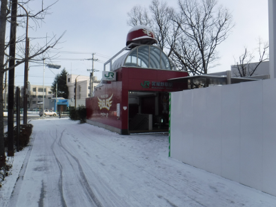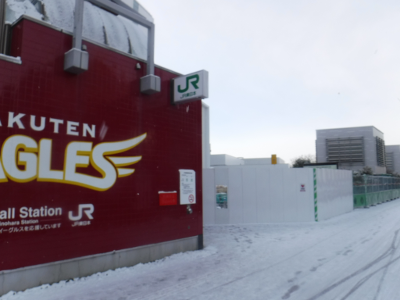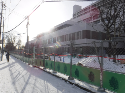 昨夜からの雪が積もったこの日,仙台医療センターの新築工事側の宮城野原駅前に違法駐輪された自転車はなかった。また,点字ブロックの利用に支障をきたすような妨害物もなかった。