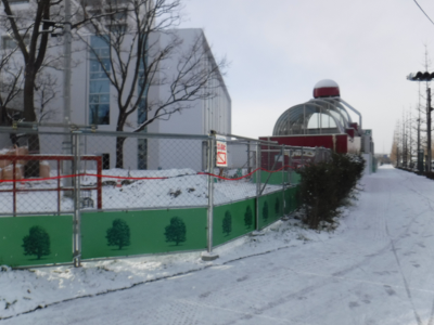 仙台医療センターの新築工事現場脇の旧ベンチの周り