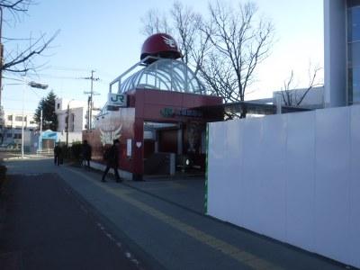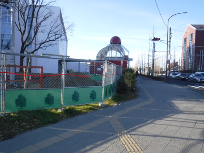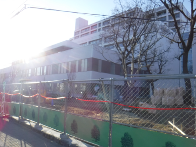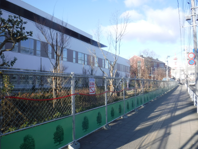 仙台医療センターの新築工事現場脇の旧ベンチの周り