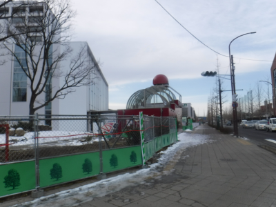 仙台医療センターの新築工事現場脇の旧ベンチの周り