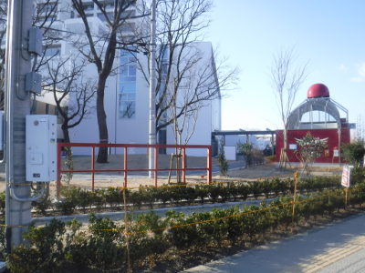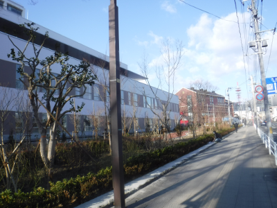 仙台医療センターの新築工事現場脇の旧ベンチの周り