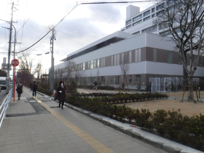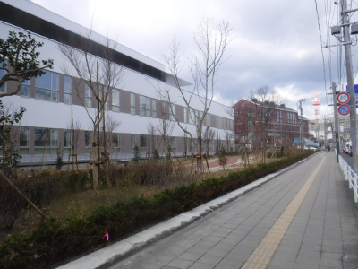仙台医療センターの新築工事現場脇の旧ベンチの周り