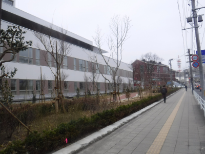 仙台医療センターの新築工事現場脇の旧ベンチの周り