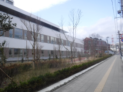 仙台医療センターの新築工事現場脇の旧ベンチの周り