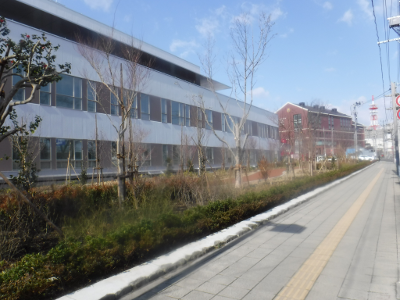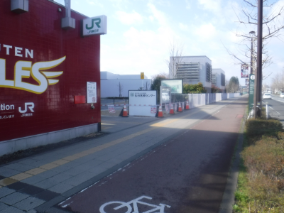 仙台医療センターの新築工事現場脇の旧ベンチの周り
