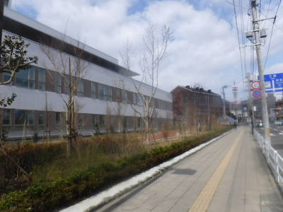仙台医療センターの新築工事現場脇の旧ベンチの周り
