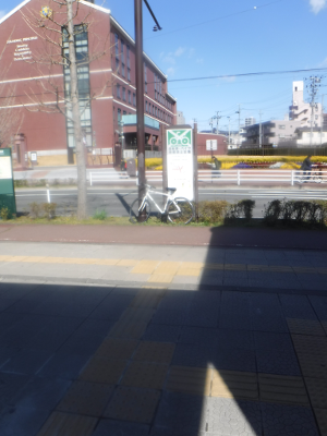 以降,この場所に放置されたままである可能性が高い。この位置への自転車の違法駐輪は,1台だけであれば,視覚障害者の歩行にも,他の交通の歩行にも大きな影響はないが,真似をする自転車が増えると,問題となってくる。管理者には,真似する自転車が出現する前に,迅速な対応をしていただきたい。