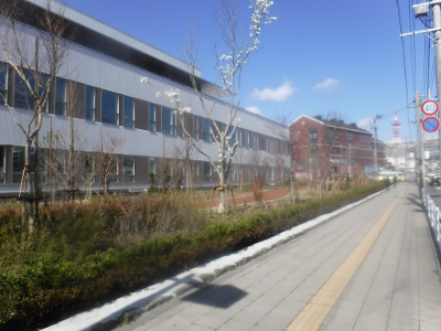 仙台医療センターの新築工事現場脇の旧ベンチの周り