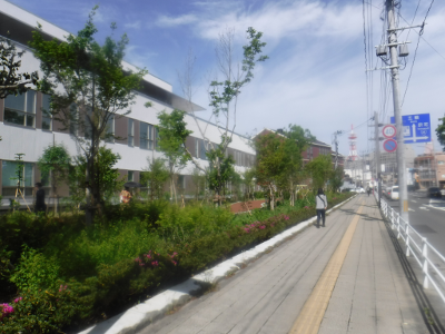仙台医療センターの新築工事現場脇の旧ベンチの周り