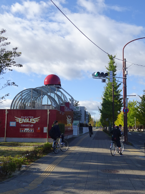 旧医療センター側の駅舎前には,1台の自転車が違法駐輪されていた