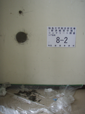 私の研究室がある経済経営学類棟は,耐震基準を満たしていないらしい.そのため,耐震工事が予定されているとのこと.今日はその事前作業として,コンクリートの劣化具合を調べるため,壁をボーリング調査していた.凄まじい音をおすそ分け. (録音:2013年3月18日)