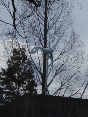 理工共通棟の屋上に設置された,理工学類のとある研究室で開発されたと思しき風車の音.風車騒音については,昨今,低周波音として問題となることが多いようであるが,この風車については通常の可聴音の帯域が問題だ. (録音:2013年12月11日)