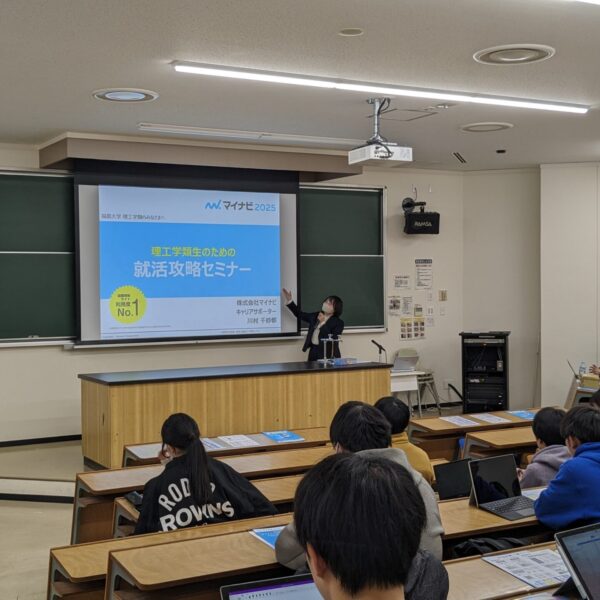 共生システム理工学類では,マイナビより講師をお招きして,学類3年生と修士1年生を主対象とした就活攻略セミナーを開催しました。