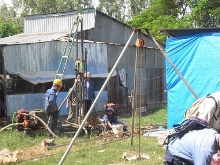 ベトナム・ドンタップ省タイ島での地下水観測孔設置のための井戸掘削